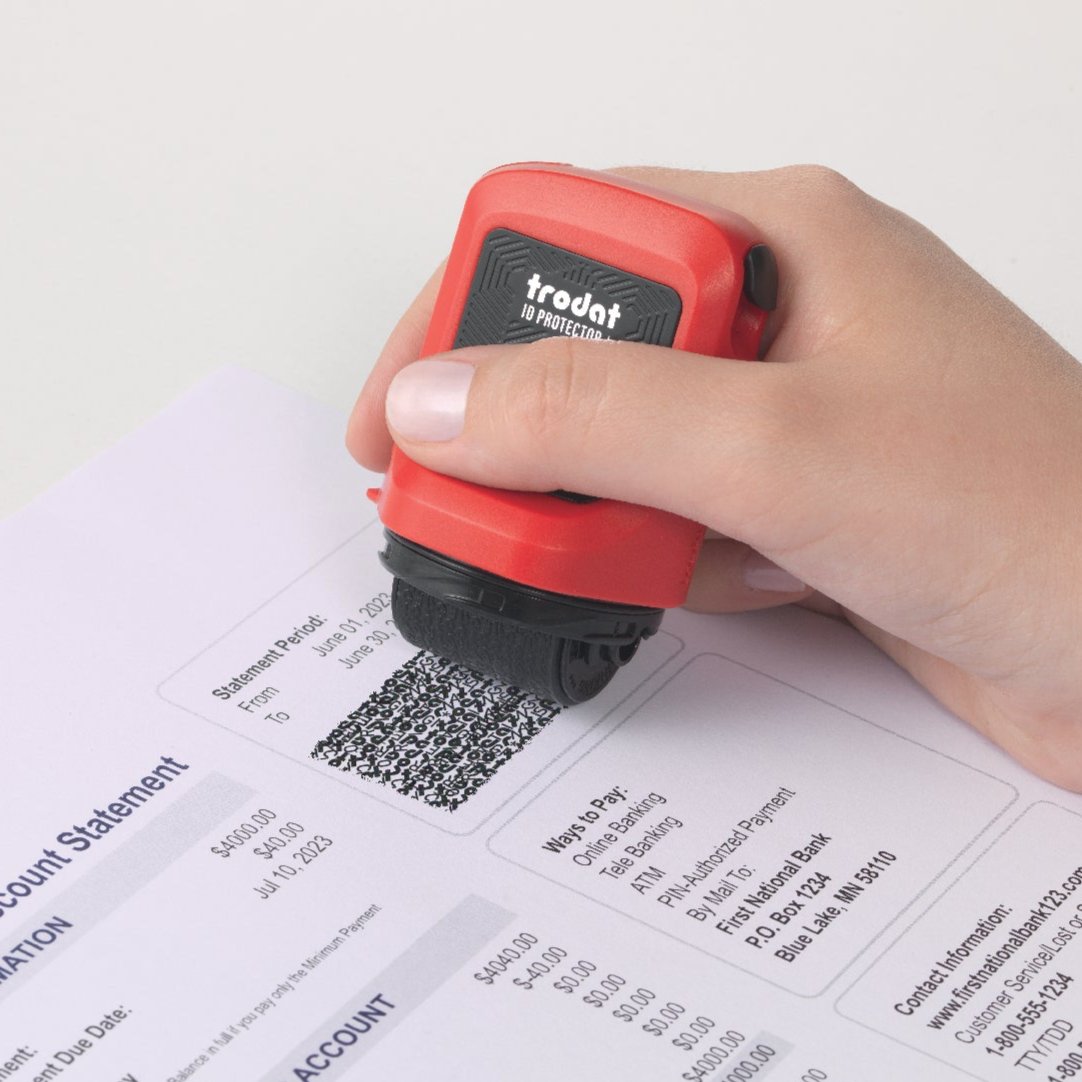 Llegó el rodillo ID PROTECTOR de Trodat para proteger tu información y datos personales antes de desecharlos. Mueve las flechas para ver el antes y el después .