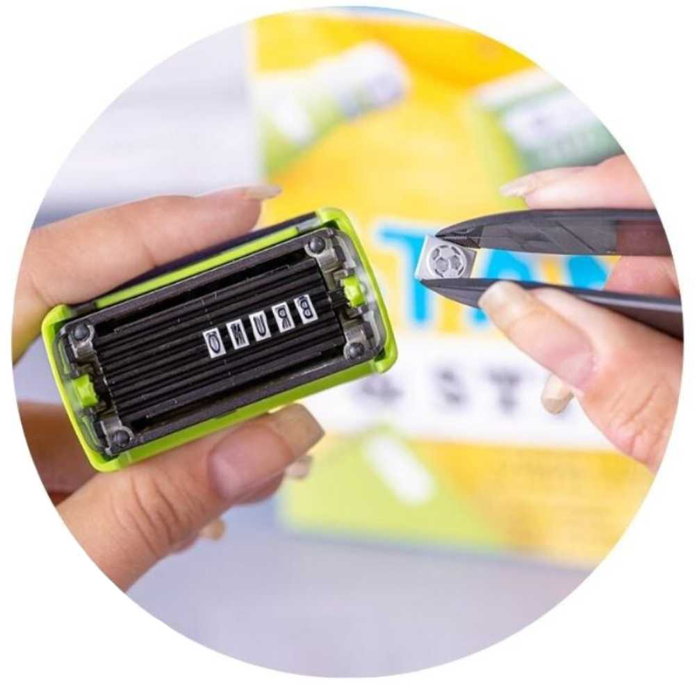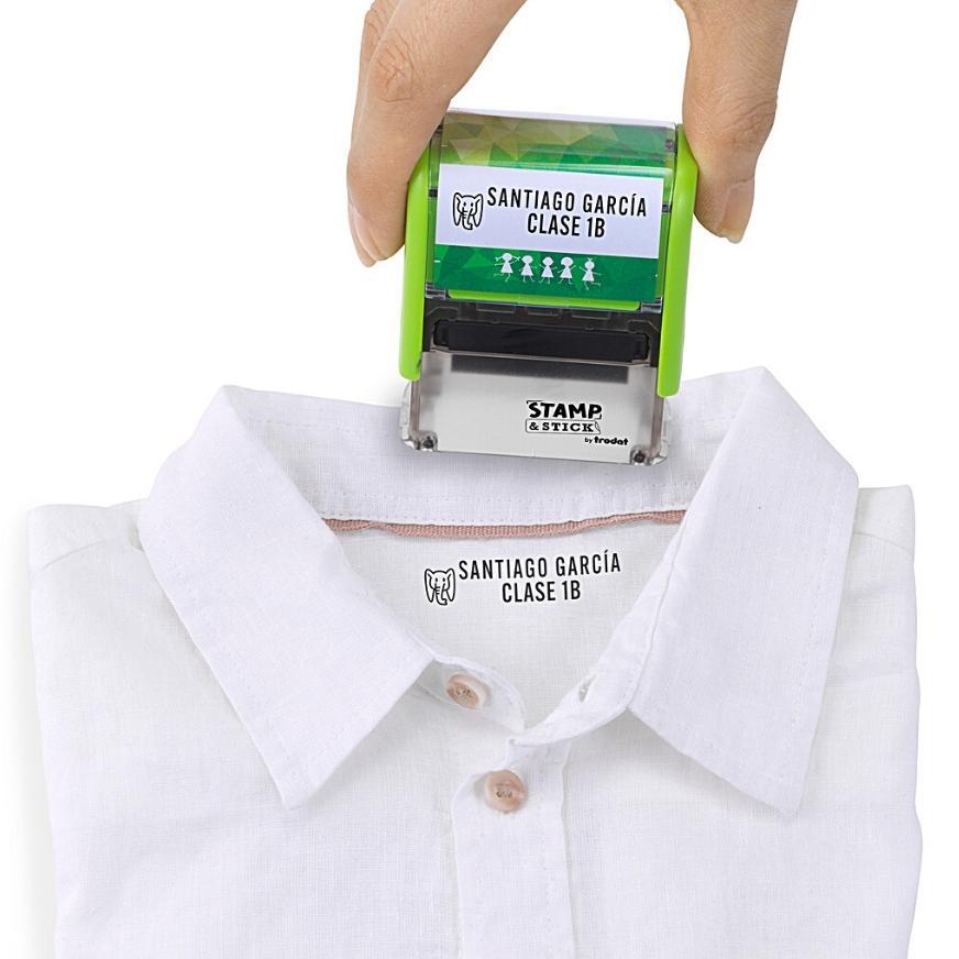 Personaliza tu sello las veces que desees y sella sobre tela. Adicionalmente, incluye etiquetas adhesivas para pegar sobre plástico y marcar lonchas, botellas, cartucheras y más!